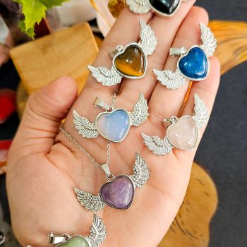 Los colgantes con dijes de cristales y piedras preciosas además de ser un bello adorno se ocupa también como un amuleto de protección y bienestar según las propiedades de cada piedra.