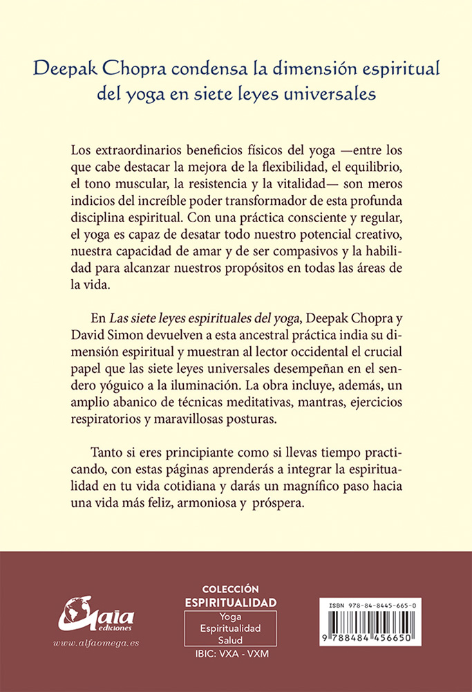 “Deepak Chopra condensa la dimensión espiritual del yoga en siete leyes universales, los extraordinarios beneficios físicos del yoga, entre los que cabe destacar la mejora de la flexibilidad, el equilibrio, el tono muscular, la resistencia y la vitalidad, son meros indicios del increíble poder transformador de esta profunda disciplina espiritual.