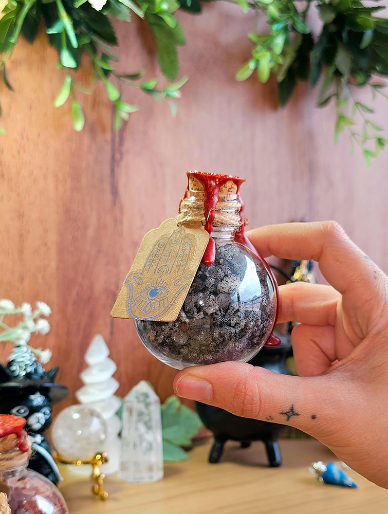 Lleva un poco de sal negra en un pequeño saquito o recipiente como amuleto de protección personal.